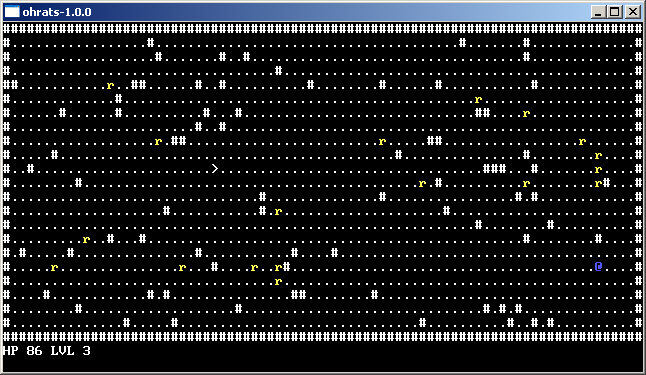 Oh Rats! is a simple roguelike programmed in FreeBASIC with less than 1KB of code. Try to stay alive as long as possible while the ravenous rats tear chunks of flesh from your body!